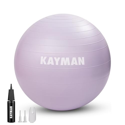 KAYMAN 85 cm träningsboll lila – anti-bristande system, halkfria ringar, hållbart material, lätt att blåsa upp, perfekt för yoga, pilates, fitness, balansträning, gym och hemträning.