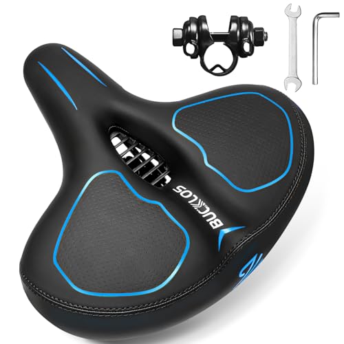 BUCKLOS Extra bred komfort cykel sittdyna cykel stora mjuka skum vadderade säten för män kvinnor – träningscykel/peloton/cykel/stationär cykel/snurrcykel