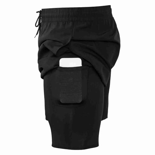 JWJ Herr 2 i 1 löparshorts snabbtorkande gym atletisk träningskläder med sidfickor, Svart, M