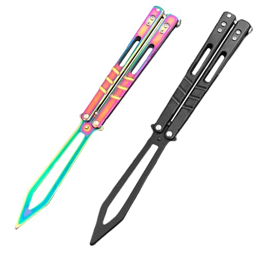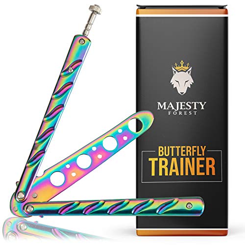 MAJESTY FOREST® Butterfly Trainer - Högkvalitativ balisongtränare i regnbågsdesign för att lära sig tricks - Träningskniv fjärilstränare med trubbigt blad