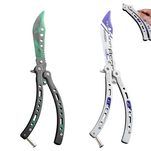 WANDGU Fjärilstränare: 2 st hopfällbara fjärilsknivar för träning oslipade blad i rostfritt stål fjärilskam för nybörjare träningskniv