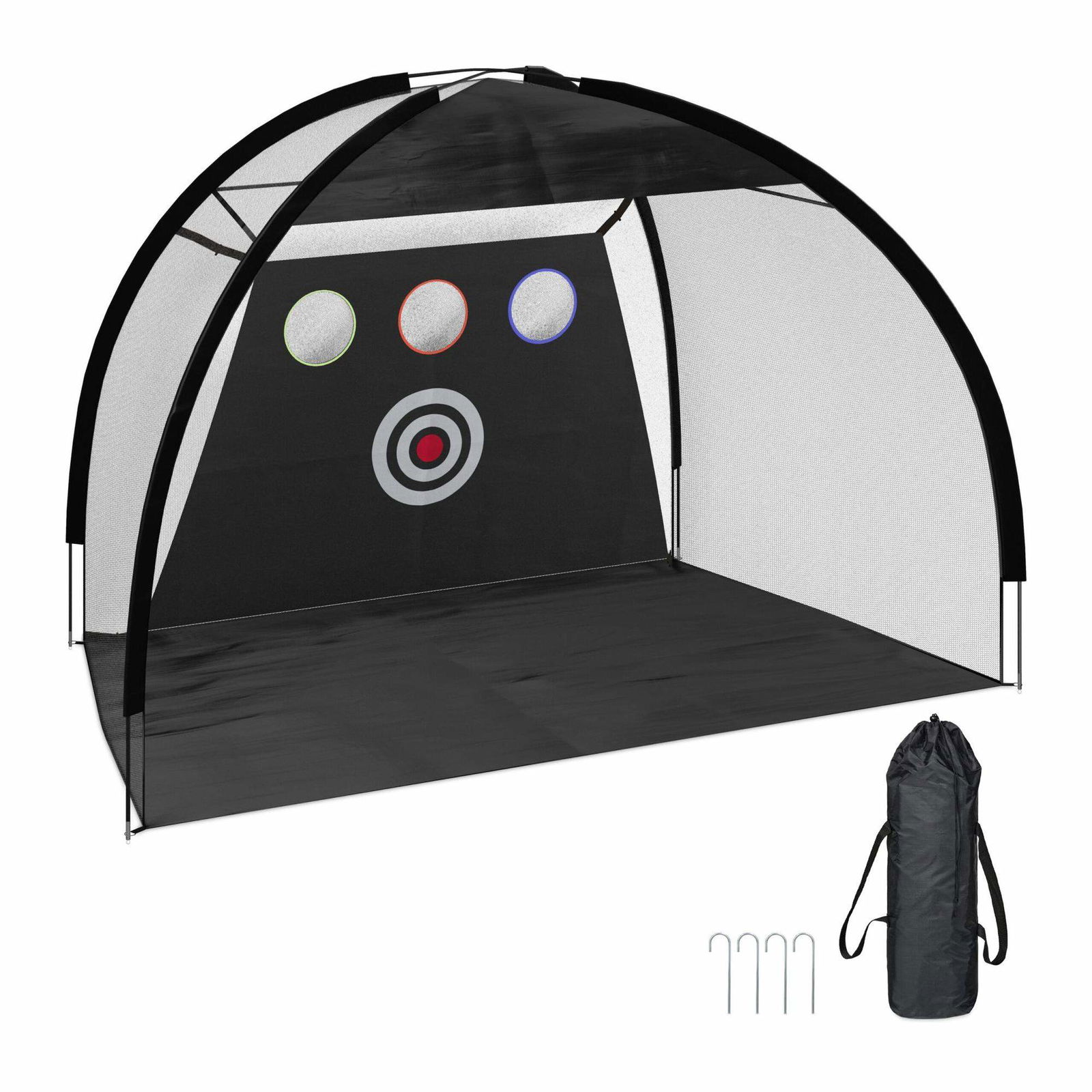 3 m Fristående Golfnät med Ram för Golfträning Träningsnät Golf Drivning Golfutrustning High Impact 25 mm Nät Övningnät Svingträning Utomhus Stålram Bullseye Mål GRATIS Konstgräsmatta & 6 cm Gummitee