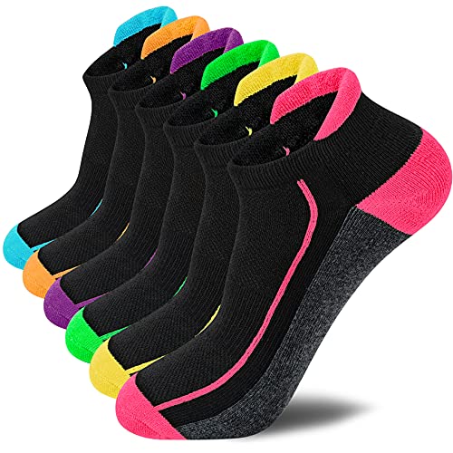 Wostock sneakerstrumpor dam 35–40, sportstrumpor dam 6 par, ventilerande strumpor dam, bomull sportstrumpor, flerfärgade träningsstrumpor, Blå/orange/lila/grön/röd/gul, 35-40 EU