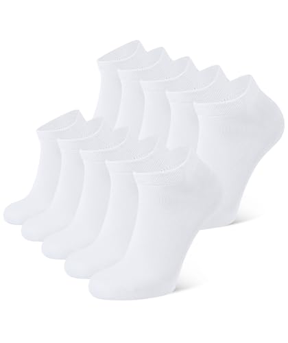 SOXCO 10 par träningsstrumpor män kvinnor sport löpning ankelstrumpor, paket med 10, Vits, 43-45 EU