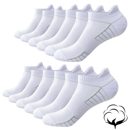 Yobenki Sportstrumpor för män kvinnor, 3/6 par tjocka vadderade ankelstrumpor anti-blåsor löparstrumpor andningsbara bomull träningsstrumpor korta atletiska strumpor för män kvinnor vit/svart, 6 Par