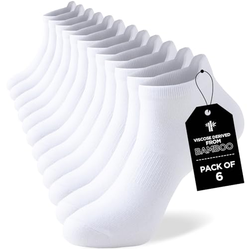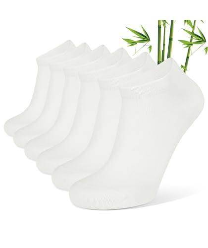 CLOSEMATE 6 par bambuviskos träningsstrumpor ankelstrumpor för män och kvinnor lågt skurna andningsbara halkfria strumpor för sport löpning vardaglig, 6 vit, 37.5-41.5 EU