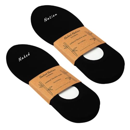 Naked Nation No Show bambustrumpor - halkfri design utan silikon, 6 par, supermjuka och andningsbara, osynliga träningsstrumpor för kvinnor och män, storlek 4-7 (M) / 8-11 (L), Svart, L