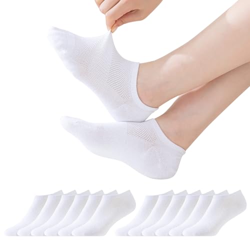 Closemate 10 Par Sneaker Strumpor Män Kvinnor Kort Bomull Dndningsbara Ankel Löparstrumpor Lågt Skurna Halkskydd Andas Träningsstrumpor Sportstrumpor Halvstrumpor (10Vit, Storlek L)