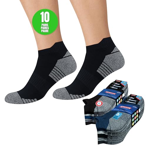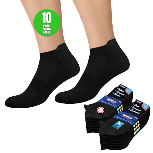SOXCO 10 par träningsstrumpor män kvinnor sport löpning ankelstrumpor, paket med 10, svarts, 43-45 EU