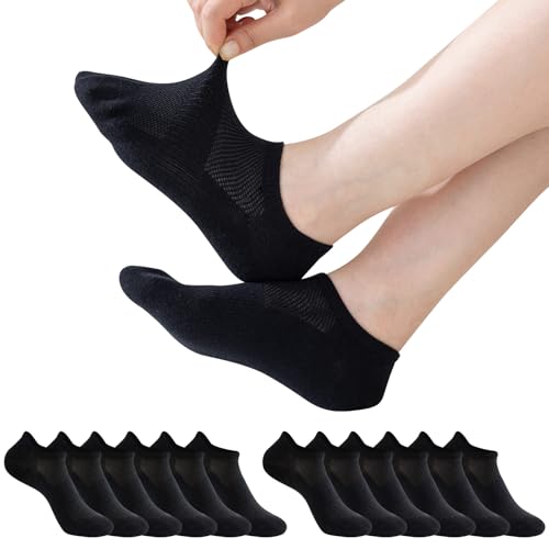 Niofind Träningsstrumpor Dam, Andningsbara Bomullsankelstrumpor, Korta Sportstrumpor, Halkfria Löparstrumpor, Osynliga Strumpor, Schwarz 35-38