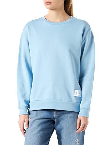 Armani Exchange Long Sleeve, präglad logotyp, rund hals träningströja dam, Glacier, XS