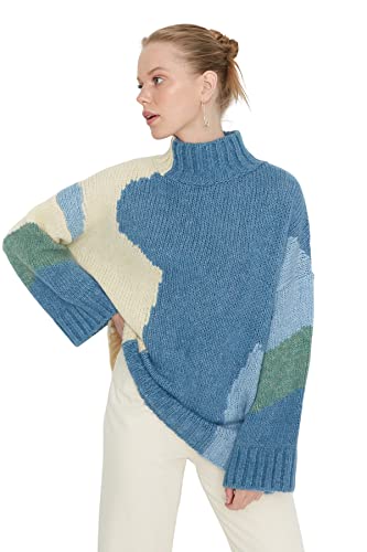Trendyol vanlig krage tröja med hög krage träningströja, blå, L dam, Färg: blå, L