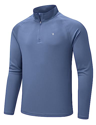 donhobo Sport löpartröjor för män, långärmad funktionell skjorta, snabbtorkande rash guard-skjortor, lätt träningströja med halv dragkedja, blå grå, M