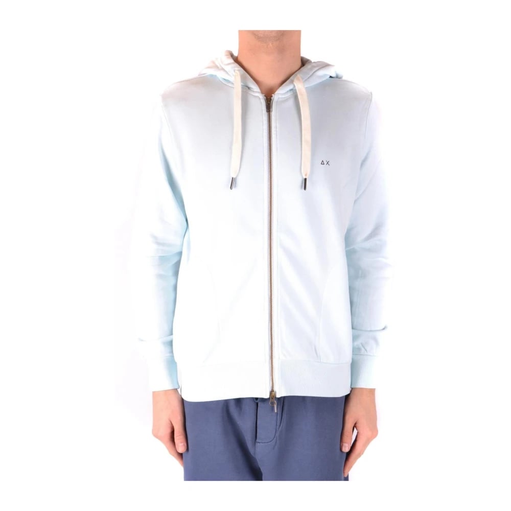 Sun68, Sweatshirts & Hoodies , Herr, S, Blå Träningströja med Dragkedja och Huva