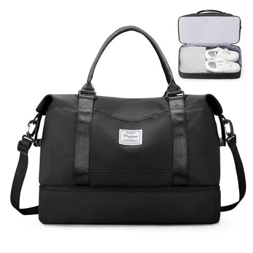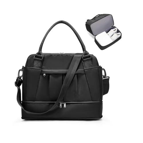 HYC00 Sportig Duffelväska Sportväska Gym Dam Herr Träningsväska Gymväskor med Skofack och Våtfack Resväska Duffelväska Fitness Väska övernattningsväska Reseduffelväskor Weekenderväska,Svart