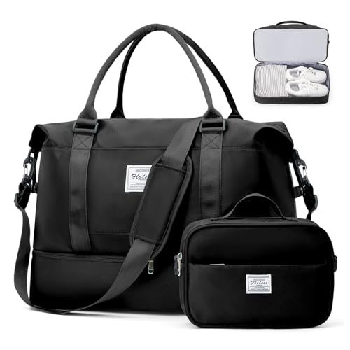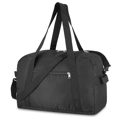 WEPLAN Duffelväska Dam Handbagage Väska 40x20x25 Ryanair Duffelväskor Weekendväska Kvinnor Män övernattningsväska Sportväska Dam Sjukhusväska med Skofack Kappsäck Gymväska Träningsväska,Svart
