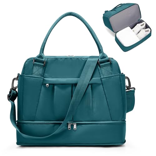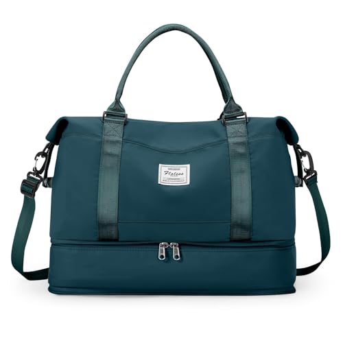 HYC00 Sportig Duffelväska Sportväska Gym Dam Herr Träningsväska Gymväskor med Skofack och Våtfack Resväska Duffelväska Fitness Väska övernattningsväska Reseduffelväskor Weekenderväska,Påfågelblå