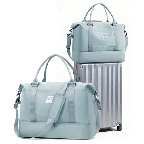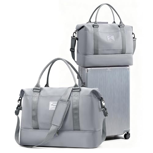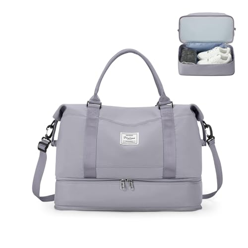 Resväska Duffelväska dam 40x20x25 Ryanair Handbagageväska Sportväska Weekendväska Badväska Vattentät resväska Duffelväska Fitnessväska Träningsväska Sjukhusväska med skofack,K15-Ljusgrå