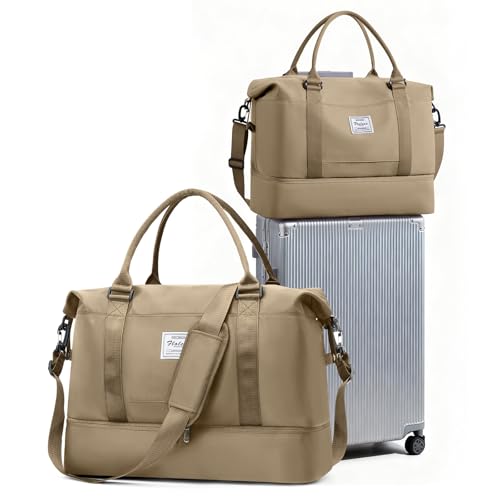 WEPLAN Duffelväska Dam Weekendväska Duffelväskor övernattningsväska för kvinnor och män Sportväska Dam Sjukhusväska med Skofack Kappsäck Träningsväska Gymväska Vattentät,Beige Brun