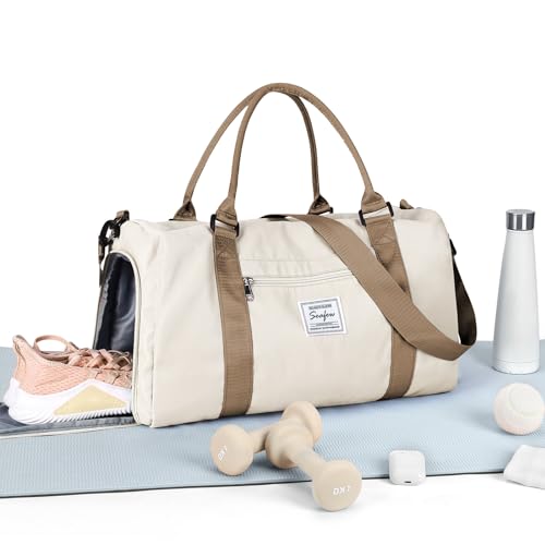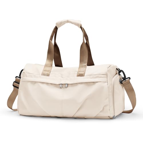 HYC00 Sportväska för Kvinnor Män Sportig Duffelväska med Våtfack och Skofack Vattentät Fitnessväska Reseduffelväskor Gymväskor Träningsväska Resväska Duffel Weekenderväska övernattningsväska,Beige Vit