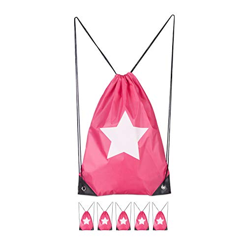 Relaxdays unisex – vuxna träningsväska stjärnor, 6-pack, dragsko, sportväska kvinnor, män, barn, 39 x 29 cm, hipsterväska, svart rosa 39 x 29 cm