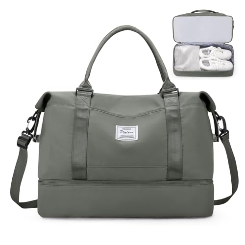 HYC00 Sportig Duffelväska Sportväska Gym Dam Herr Träningsväska Gymväskor med Skofack och Våtfack Resväska Duffelväska Fitness Väska övernattningsväska Reseduffelväskor Weekenderväska,Militärgrön