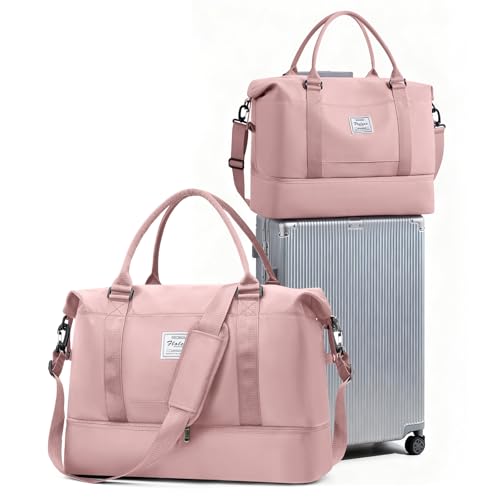WEPLAN Duffelväskor Dam Weekendväska övernattningsväska för kvinnor och män Duffelväska Sportväska Dam Sjukhusväska med Skofack Handbagage för Flygplan Kappsäck Träningsväska Gymväska,Rosa