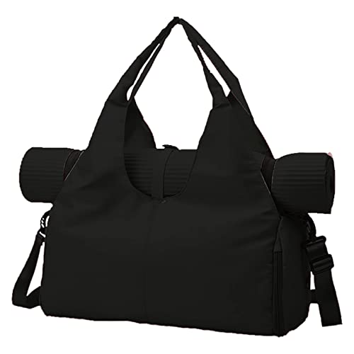 TOATELU Sportväska dam yogaväska, yogamatta sportväska med skofack, vattentät resväska träningsväska, gym sport gym väska för yogamatta (svart)