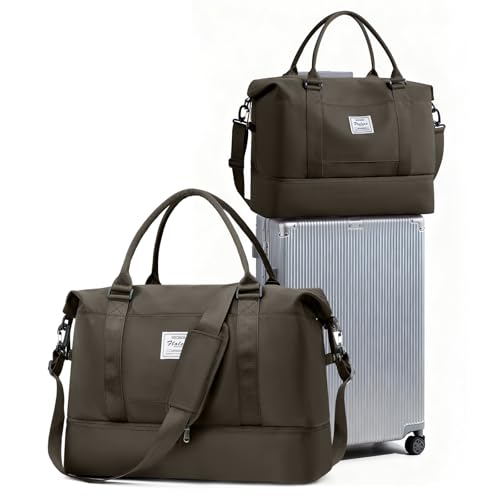 WEPLAN Duffelväska Dam Weekendväska Duffelväskor övernattningsväska för kvinnor och män Sportväska Dam Sjukhusväska med Skofack Kappsäck Träningsväska Gymväska Vattentät,Svart Brun