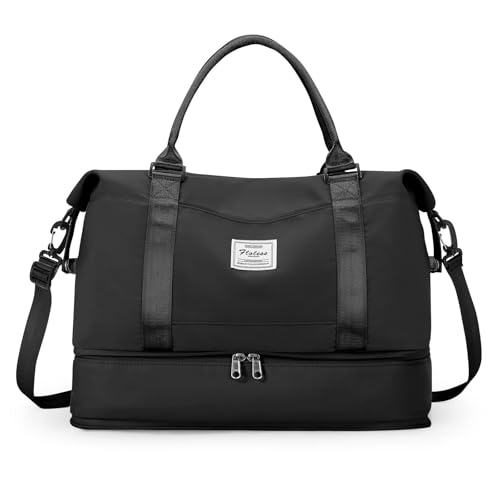 Resväska dam sportväska Ryanair handbagage väska 40 x 20 x 25 weekender bag simväska vattentät reseväska duffle bag 40 x 30 x 20 fitnessväska träningsväska kvinnor för resor gym, F1-svart (lätt