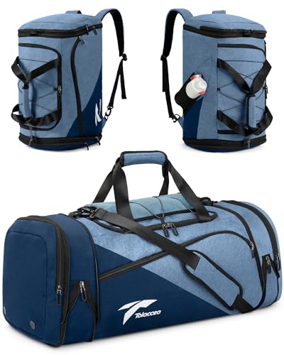 Tolaccea Expanderbar sportväska, ryggsäck för män och kvinnor, 54–72 l sportväskor, stor med skofack, våtfack, laptopfack, resväska, träningsväska för gym, resor, simning, bastu, fotboll, blå, 45-63L,