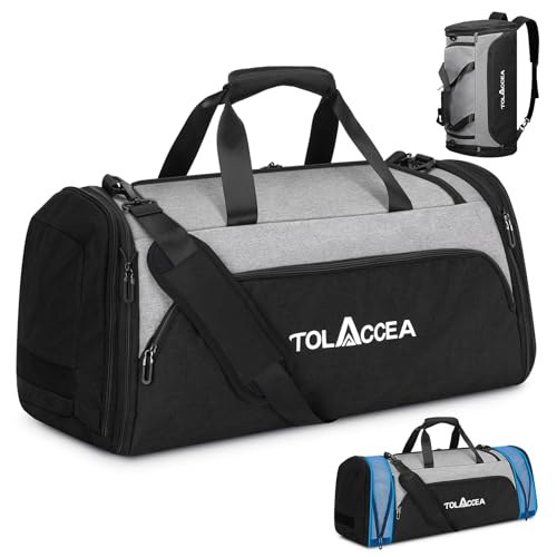 Tolaccea 54L-72L Expanderbar sportväska för kvinnor och män, stor resväska, ryggsäck med skofack, fitness, träningsväska för gym, resor, simning, bastu, fotboll, GRÅ, Grå