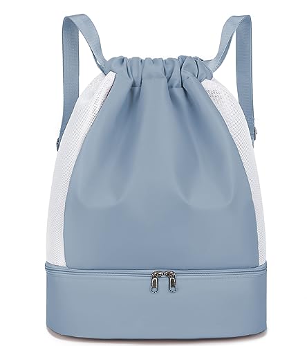 Keyck Gym Bag Drawstring Daypack, Vattentät Ryggsäck Med Skofack och Våtutrymme, Stor Sportväska för Kvinnor Män Tonåringar, Gympapåse Träningsväska för Sportresor Simning Fotboll, Blå
