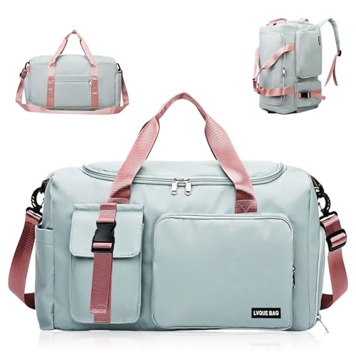 Sportväska ryggsäck 2-i-1, resväska stor, 42 l sportväska för kvinnor och män, sportväska med skofack våtfack, för träningsväska, simväska, övernattningsväska, duffelväska, gymväska, GRÖN, för