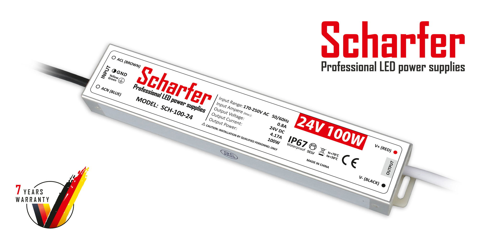 SeKi 24 V DC 100 W 4,16 A konstant spänning LED-drivrutin platt design/slim; strömförsörjning, transformator, växelströmförsörjning; ingen minsta last, inget buller/LED-flimmer, MM godkänd