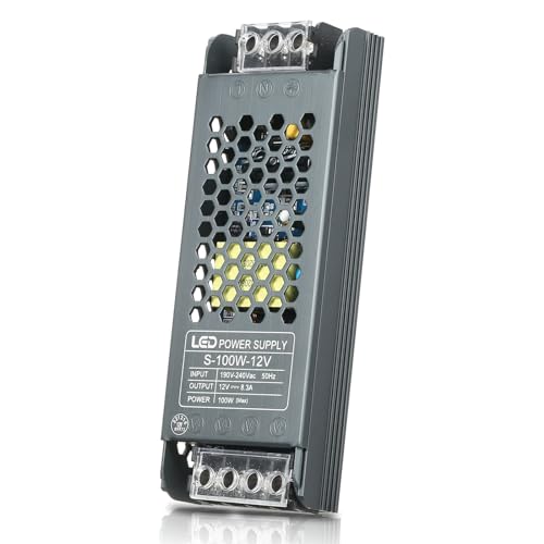 LED Transformator 12V Drivrutin 100W, IP20 Slimmad LED Strömförsörjning AC 220V till 12V DC 8.3A, Konstant Spänning Adapter för LED Strip Ljus G4 MR11 MR16 Glödlampor CCTV, DUSKTEC
