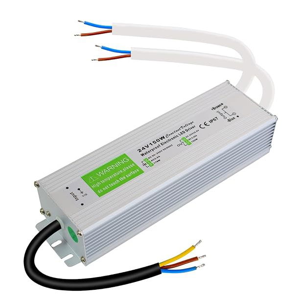 REYLAX LED Transformator 24V 150W 6.25A, Lågspänningstransformator 240V till 24V DC Adapter, Slim LED Strip Power Supply, Constant Voltage LED Transformer