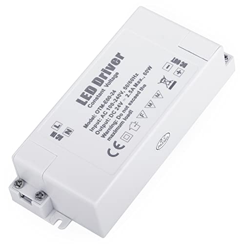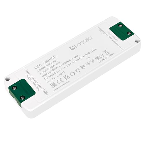 Lacasa LED Transformator 24V 2.5A, 60W Strömförsörjning AC200-240V till DC24V LED Drivrutinskonverterare Adapter, Ultra Slimmad Konstant Spänning LED Driver för LED-remsor, G4 MR11 MR16 LED Glödlampor