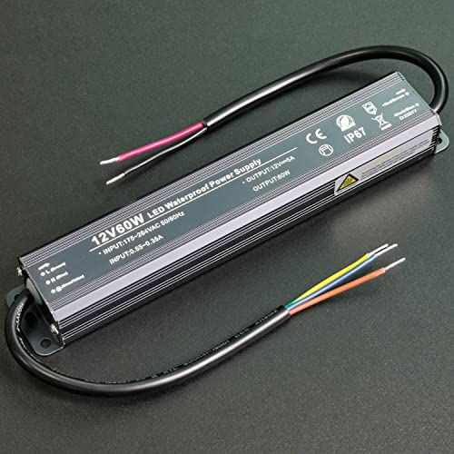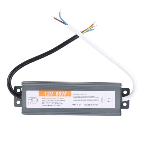 Alinana LED Transformator 12V 60W, IP67 Vattentät 230V Till 12V, Nätadapter för LED-remsor, Lampor, Skyltar, Utomhuskameror, 0-5A