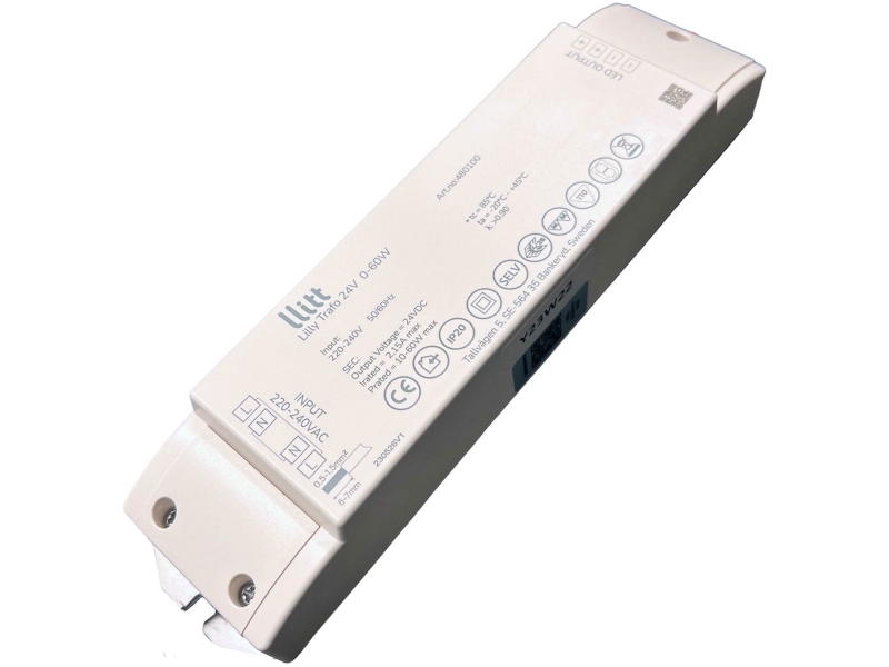 Llitt: Lilly Driver Transformator för LED-strip 24V 0-60W IP20