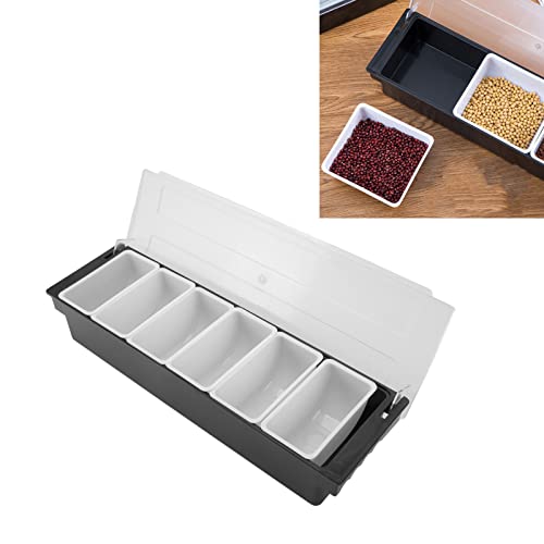 Condiment Caddy Bar Fruit med Lock, Transparent Plast Slitstark Multifunktionell Barfruit Caddy för Grönsaker Frukt Kryddor (6 Fack), Avtagbar Design