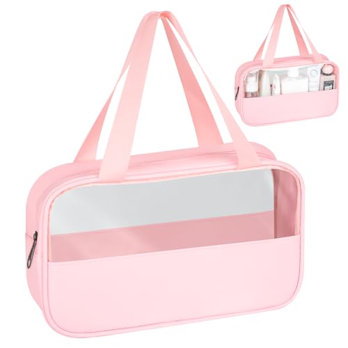 elzle Genomskinliga toalettväskor, reseskönhetsväska, bärbar sminkväska, viktig resenödvändighet, PVC + vattentät transparent hängande PU för kosmetika, kvinnor/män (rosa)