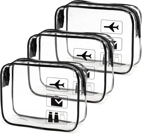 Cheerhom 3-pack genomskinliga TSA-godkända flygplanshandbagage, vätskepåse reseprylar vattentät sminkväska män kvinnor flickor, Klar, Transparent