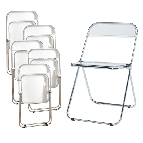 KAIHAOWIN Lyxig modern transparent hopfällbar stol akryl fällstolar – spöke stapelbar kristallsits – PC plast vardagsrum säte – kromram accent sidostol för utomhus inomhus