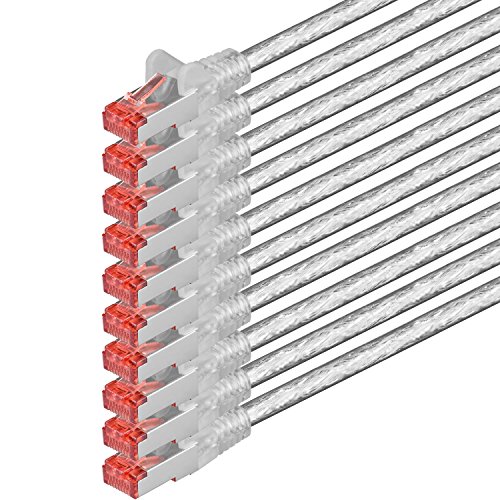 1aTTack.de 0,5 m Cat6 Ethernet-kabel Lan Patch Cat 6 kablar Internet Rj45-kontakt 1 Gbit/s SFTP PIMF för strömbrytare, router, modem, dator, spel, TV, patchfields - transparent - 10 stycken 0,5 m