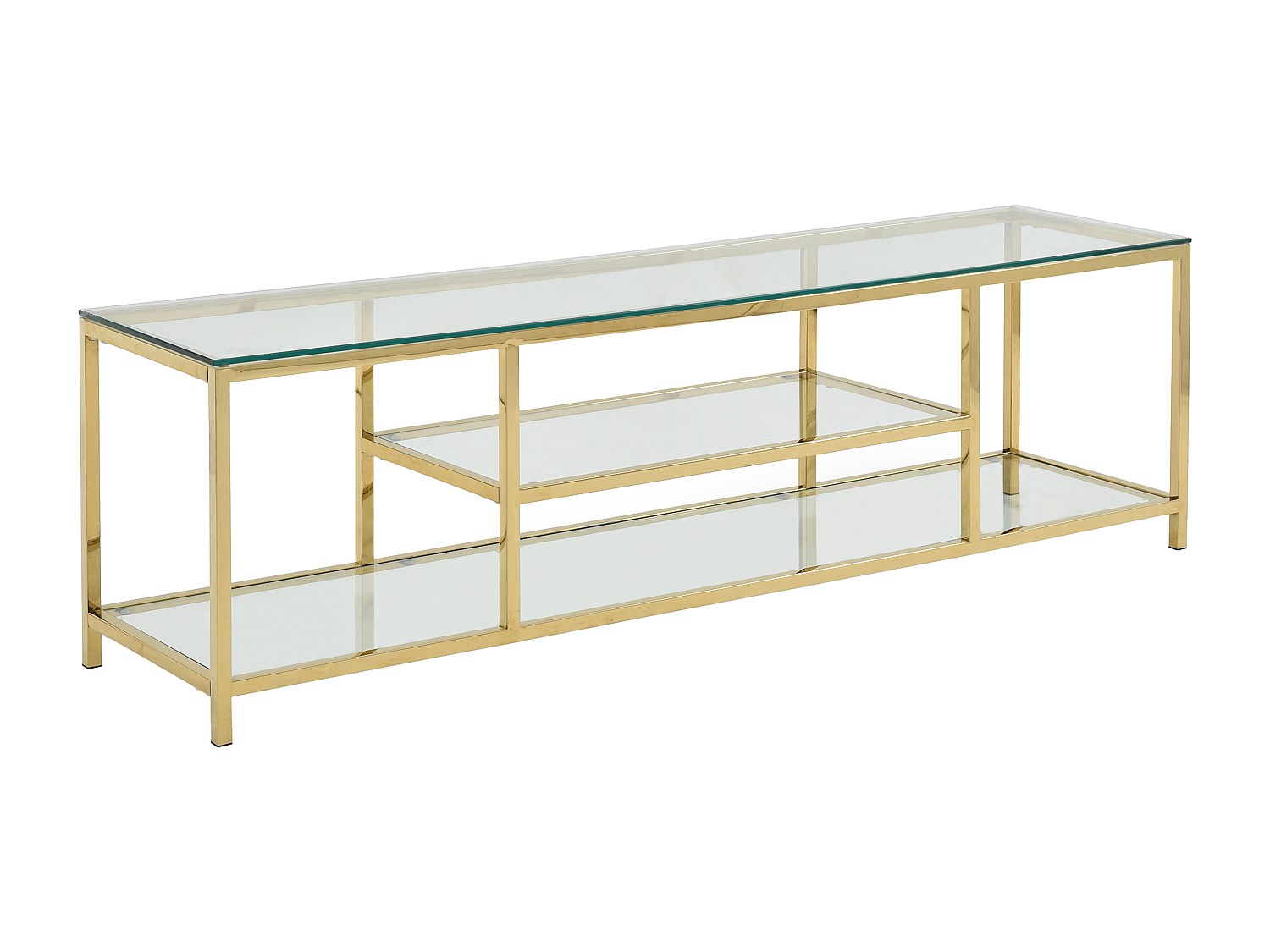 TV-möbel med 2 hyllor i härdat glas och rostfritt stål - Transparent och Guld - RIMALI från Pascal Morabito