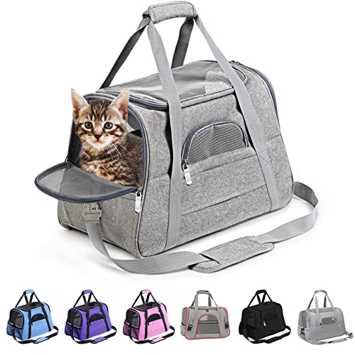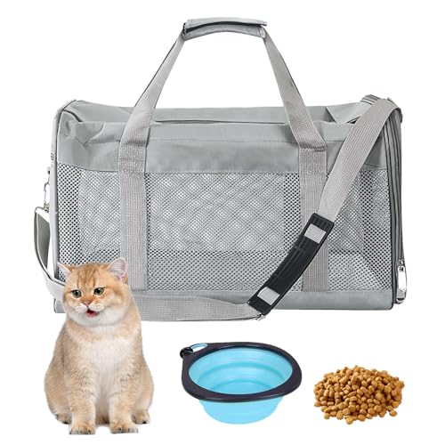 Wakytu hundresväska flygplan, transportbur för katt hund, transportväska för husdjur, vikbar hundtransportbur, kattransportbur, bärväska för hundar, hundbur för bil, ventilerande hundväska grå