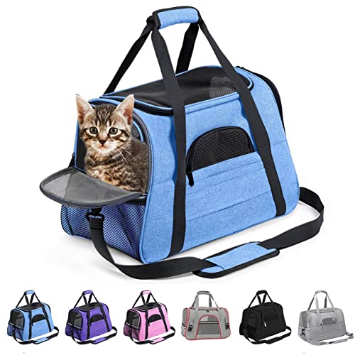 KJSXUUE Transportlåda katt, transportbur hund, mjuk och vikbar bärbar transportbur för husdjur, kan bäras för hand, över axeln eller crossbody (blå)