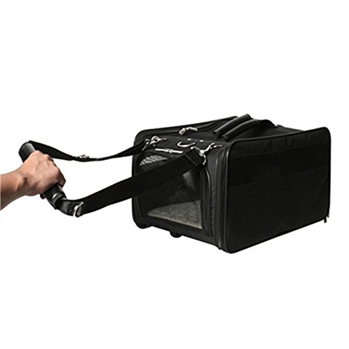 KJSXUUE Transportlåda katt, transportbur hund, mjuk och vikbar bärbar transportbur för husdjur, kan bäras för hand, över axeln eller crossbody (svart)