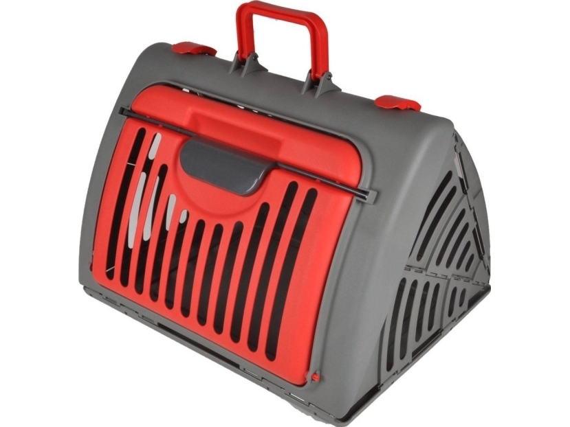 Homea Transportbur För Katt Och Hund, Hopfällbar, Plast, 46 X 35 X 33 Cm, Antracitröd
